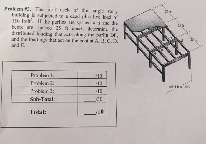 The roof deck of the single story building is subjected to a dead plus live load of 125 lb ft 2.